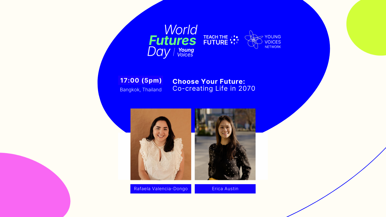 As part of World Futures Day - Young Voices (WFD-YV), a global 24-hour conversation exploring possible futures, co-facilitators Rafaela Valencia-Dongo (Peru–Spain) and Erica Austin (New Zealand) partnered as Next Generation Foresight Practitioners (NGFP) 2026 Fellows to host an interactive session focused on youth voices and collective imagination. Bringing together participants from around the world, this collaboration created space to explore how futures thinking can help us reimagine belonging, community, and thriving in a rapidly changing world.